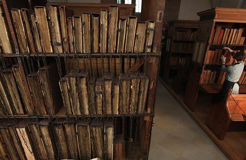教堂最早藏書不到150本書,以宗教與法律為主。這些完全是手寫和手工綁定的書籍非常珍貴。為了避免書籍和手稿被偷走,又要讓民眾方便取閱,教堂便用鐵鍊將書本鍊住。